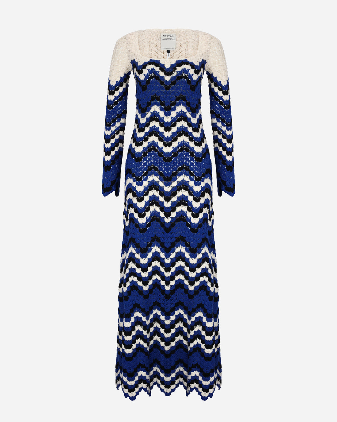 Composition: 100% Cotton Color: Ivory | Blues Description Hand crocheted long sleeve Maxi...