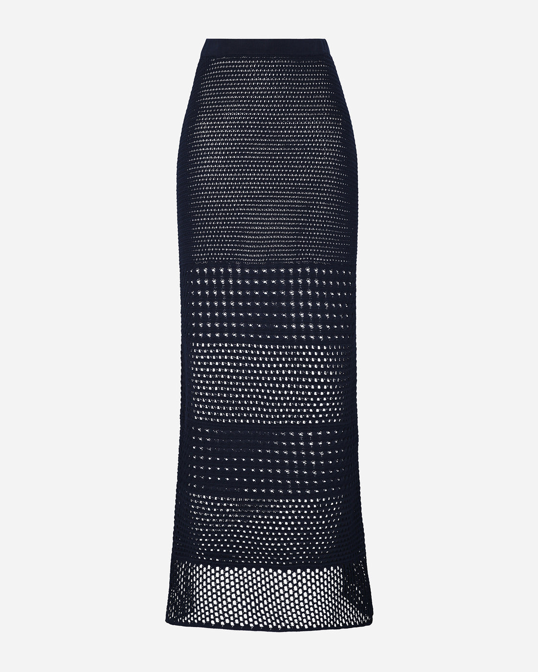 Composition: 100% Cotton Color: Navy Description The AMADA Maxi Skirt has a soft drape, making...