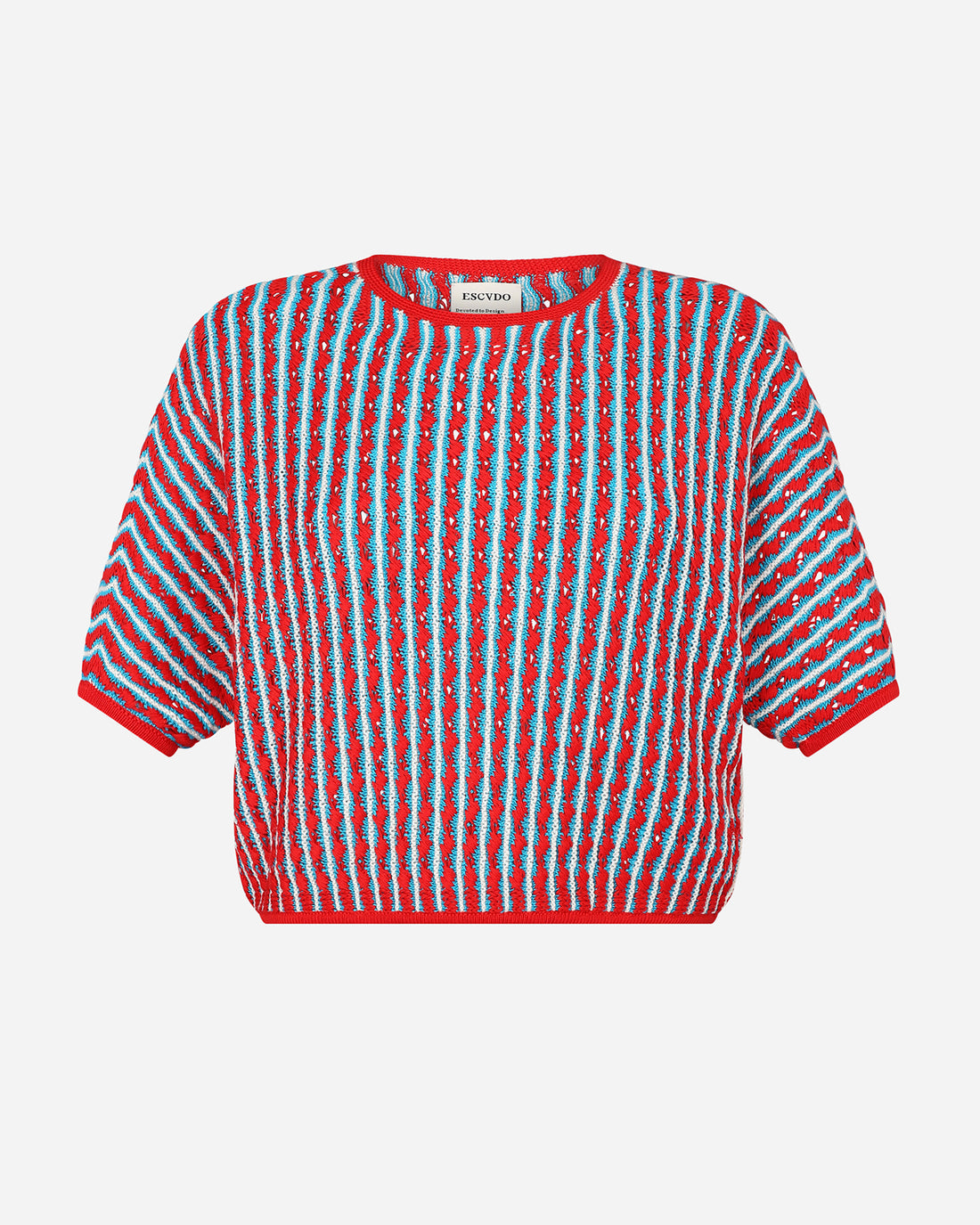 Composition: 100% Cotton Color: Red & Cian Description This blouse features a refined pattern that...