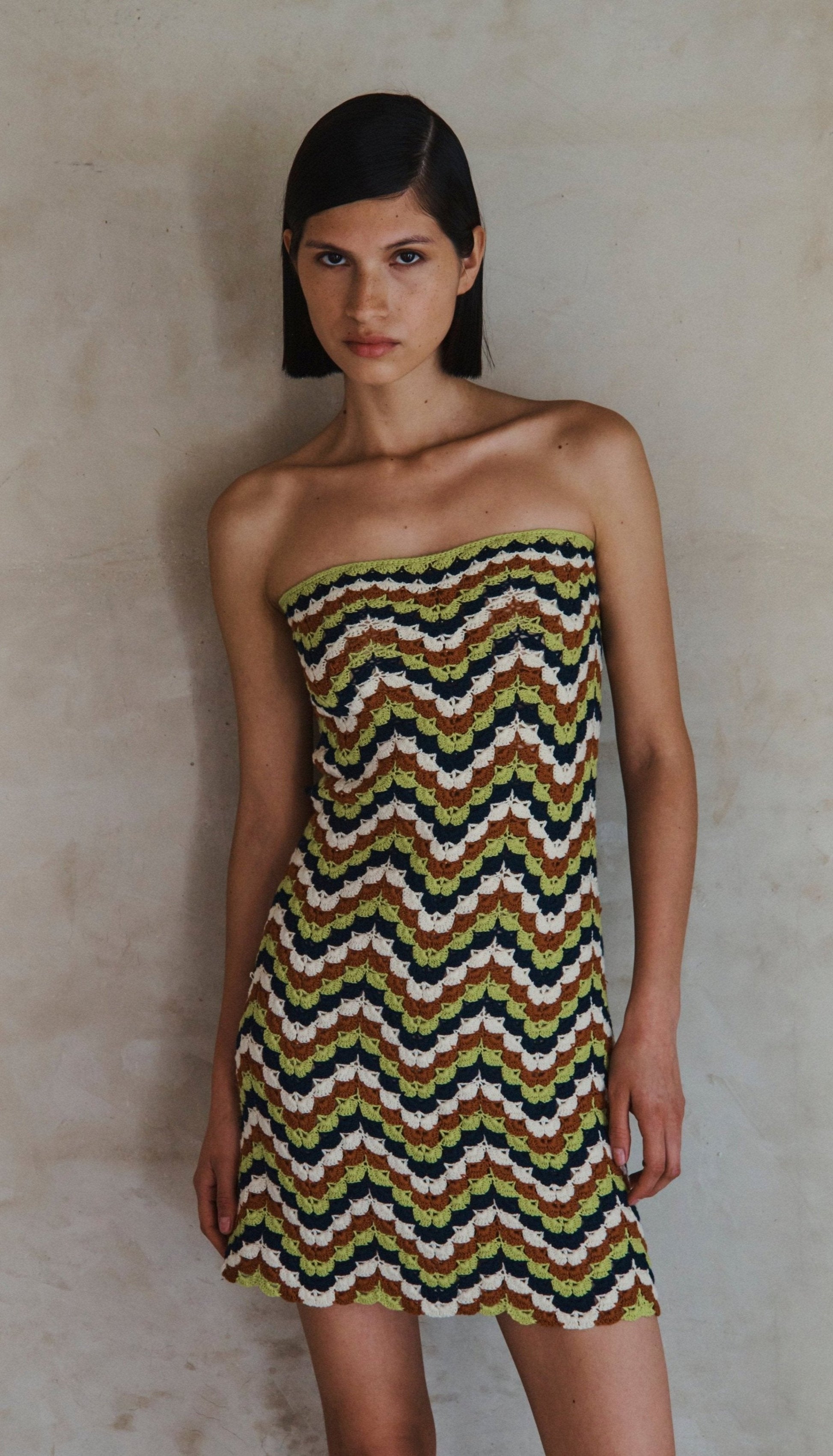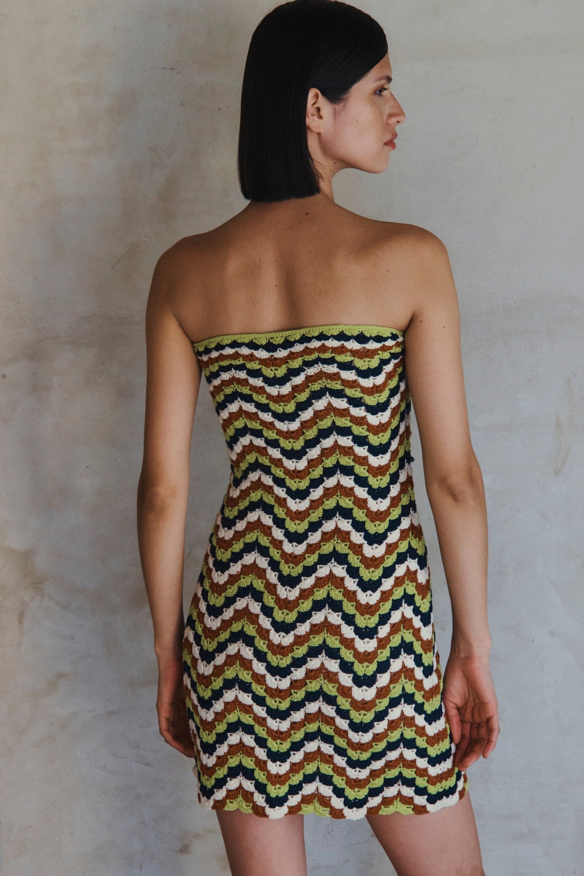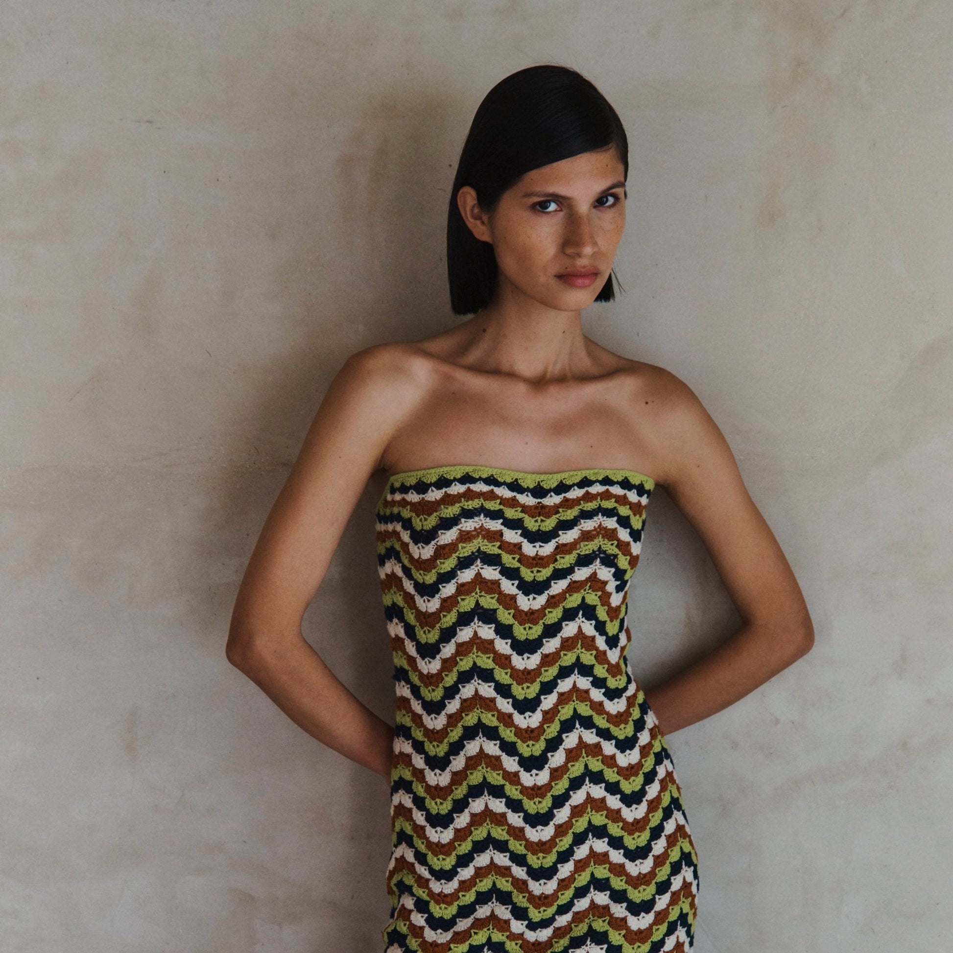 A crochet masterpiece, the MAREA is a crochet dress designed with a type of stitch, the Abanico, that mimics the waves of the ocean, an homage to the sea as it was interpreted by ancient Peruvians in drawings and textiles. Each dress is handmade by a single woman artisan over a period of three weeks. A showstopper dream for the summer.