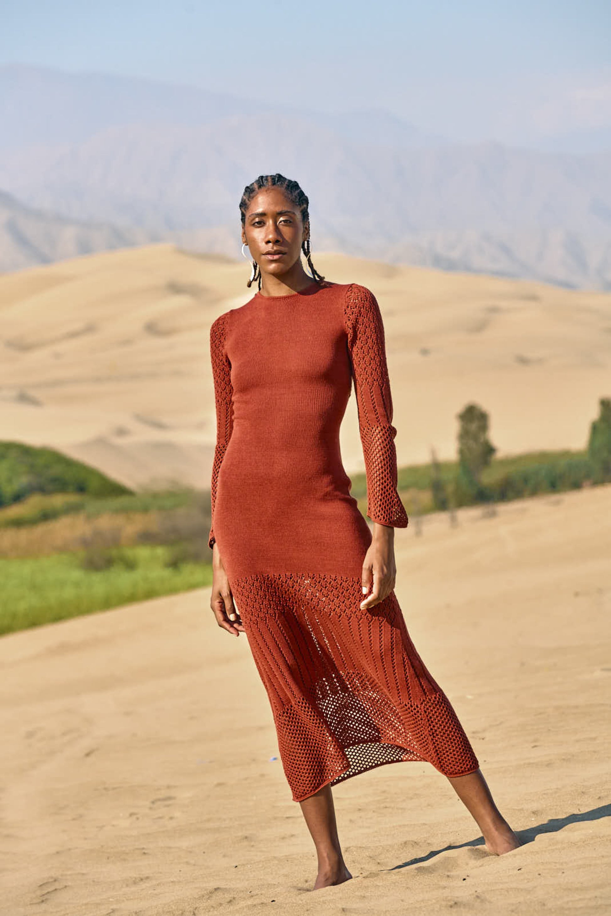 With a deep open back and long soft bell sleeves, the MURGA is a classic ESCVDO silhoutte, full of femininity and detail. Tight at the waist, it is easy to wear and perfect to accessorize. The Tan Brown tones were designed in the ESCVDO Studio for the CAMINO collection.