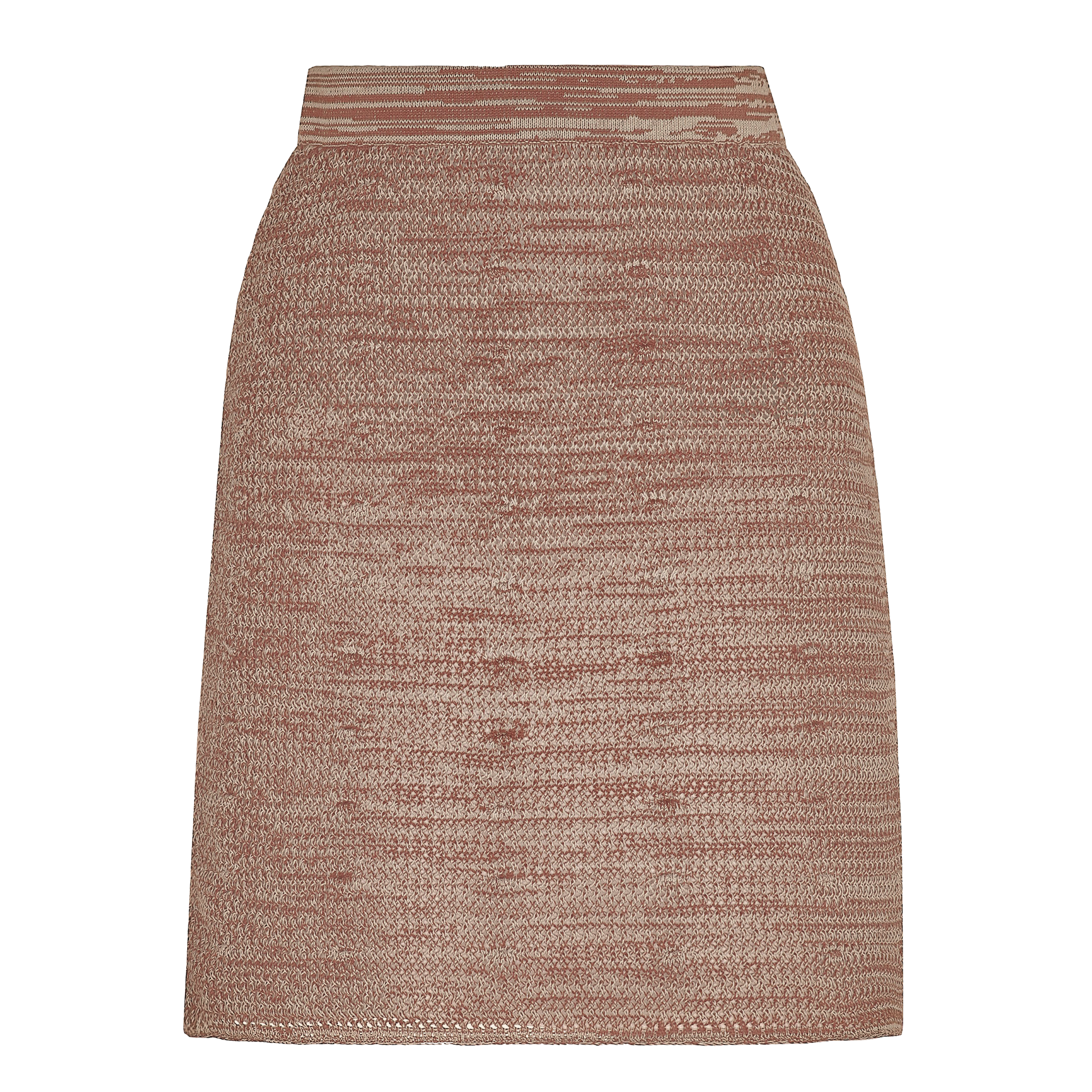 The OFRENDA mini skirt expresses the route of the Spondylus on the Inca trail with a ESCVDO Studio designed melange of ivory and tobacco. A classical and feminine shape, it has been made in texturised stitching, which adds a layer of complexity to the piece.